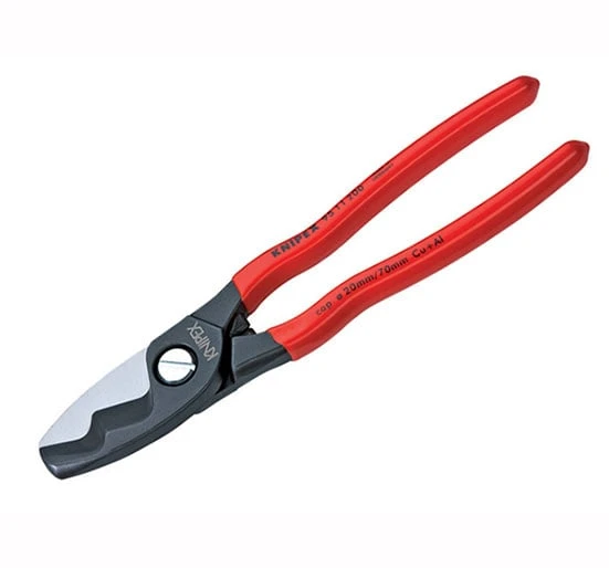 The Knipex 95 11 cable shears are ideal for cutting copper and aluminium cables, single and multiple wire cables but are not suitable for steel wire and hard drawn copper conductors.