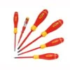 The screwdrivers have large diameter handles, offering a high torque required for driving wood screws. In addition, the chrome vanadium steel bars allow for high torque and reduce the chance of tip breakage. The handles are moulded directly to the bars to form a virtually unbreakable bond, resulting in highly reliable screwdrivers with an extra long life.